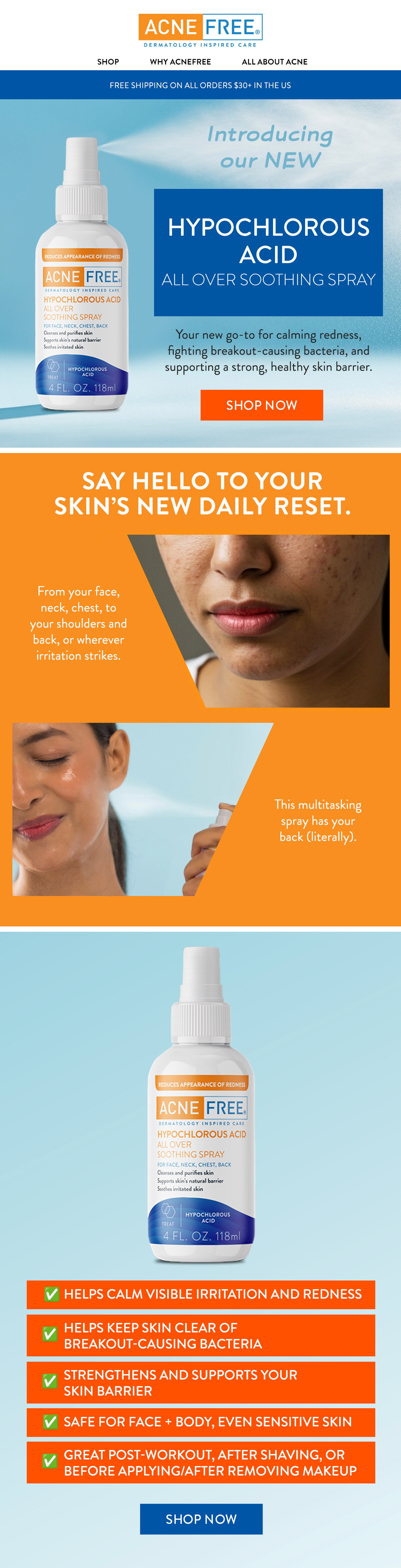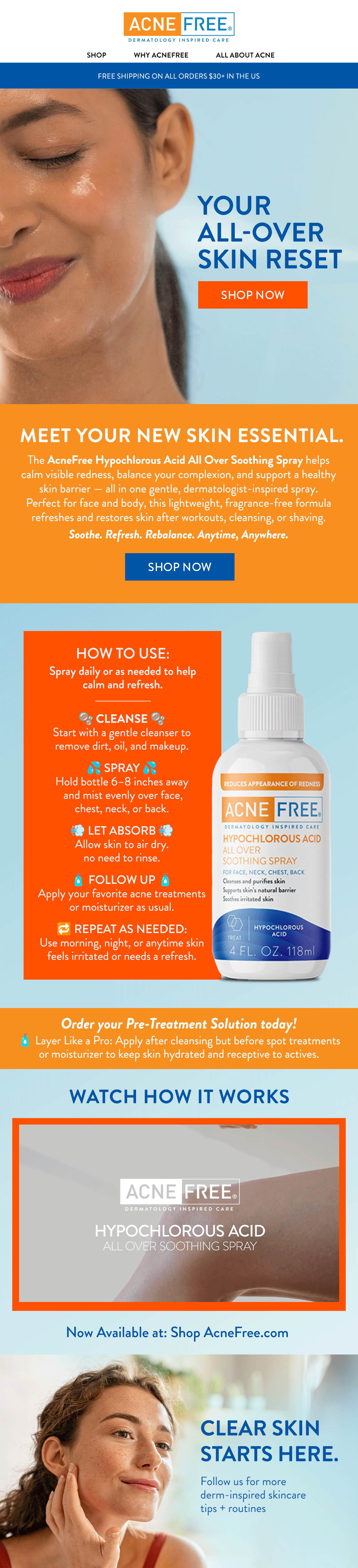 Collaborated with a team of designers at Exupery Design on the launch campaign for AcneFree’s Hypochlorous Acid Spray, contributing to the development of digital marketing assets.