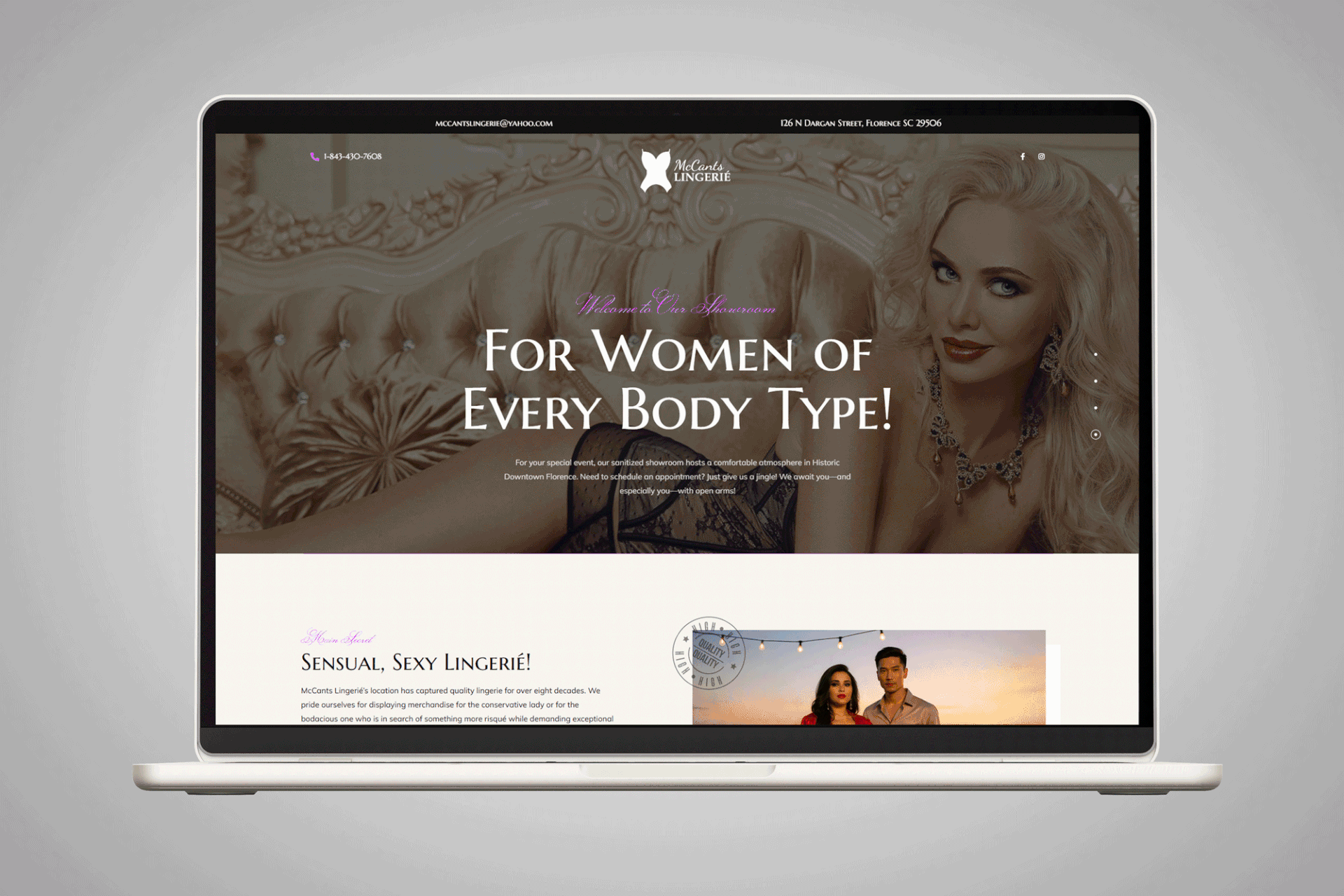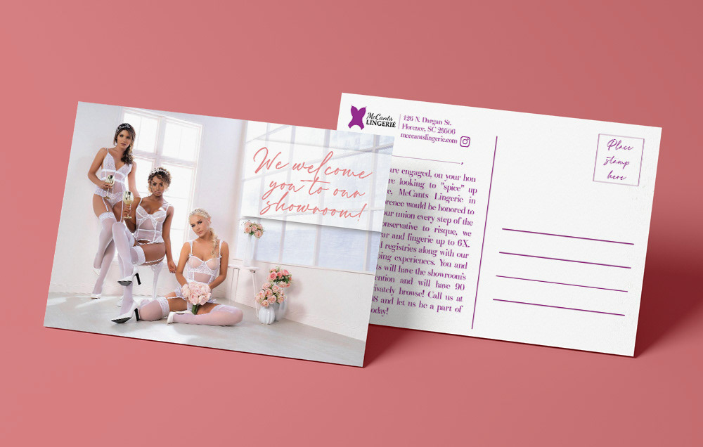 Ongoing design support for McCants Lingerie since 2018, creating cohesive visual assets across both digital and print. Contributed to website design, postcards, and promotional materials, helping maintain a consistent and recognizable brand presence.